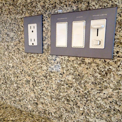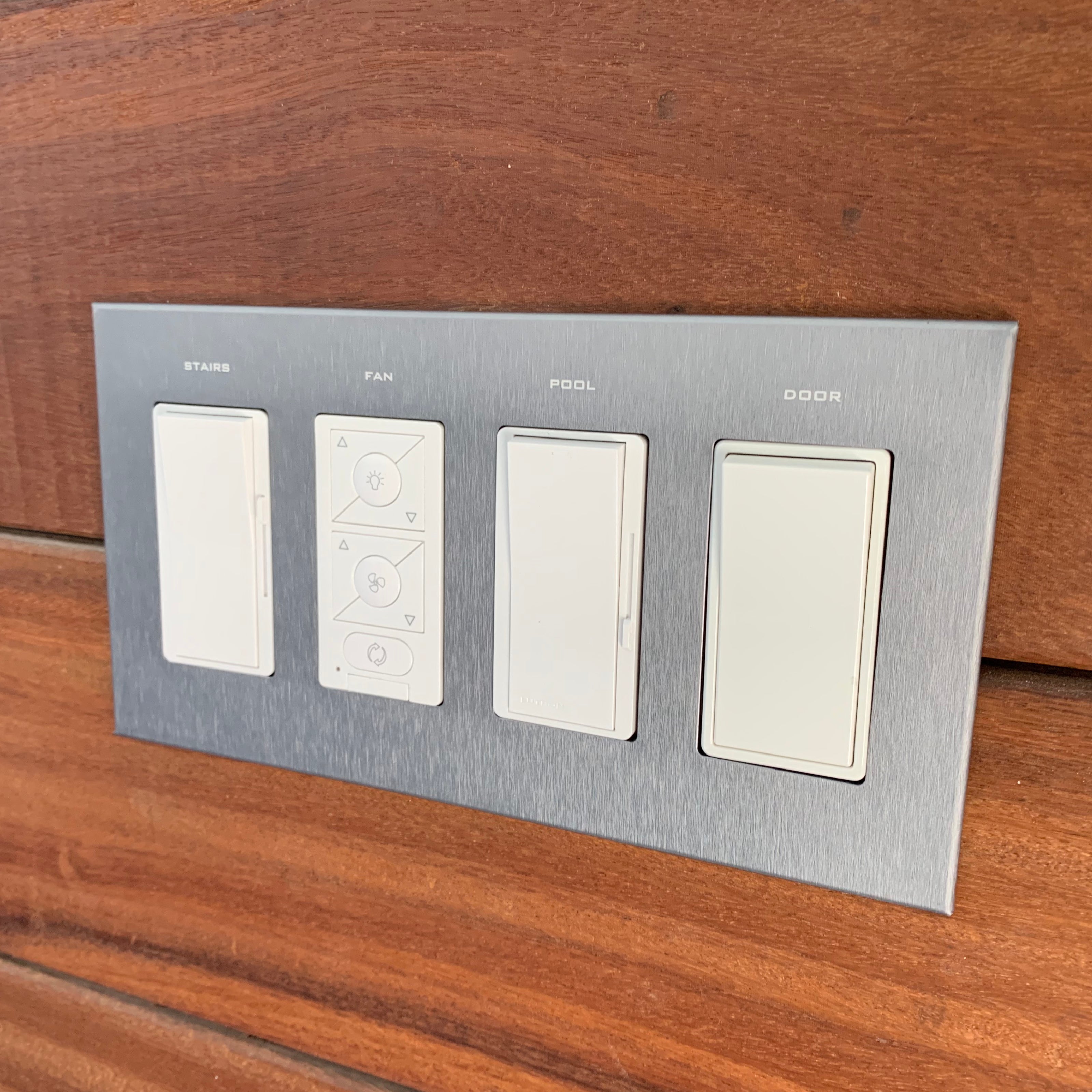 What makes the CleanPlate different from other covers, is the CleanPlate can be custom laser engraved to identify what a switch operates, eliminating the confusion of what turns on what. Additionally the CleanPlate is easily removed and replaced for cleaning, painting, maintenance, etc., by the use of high-powered rare earth magnets.