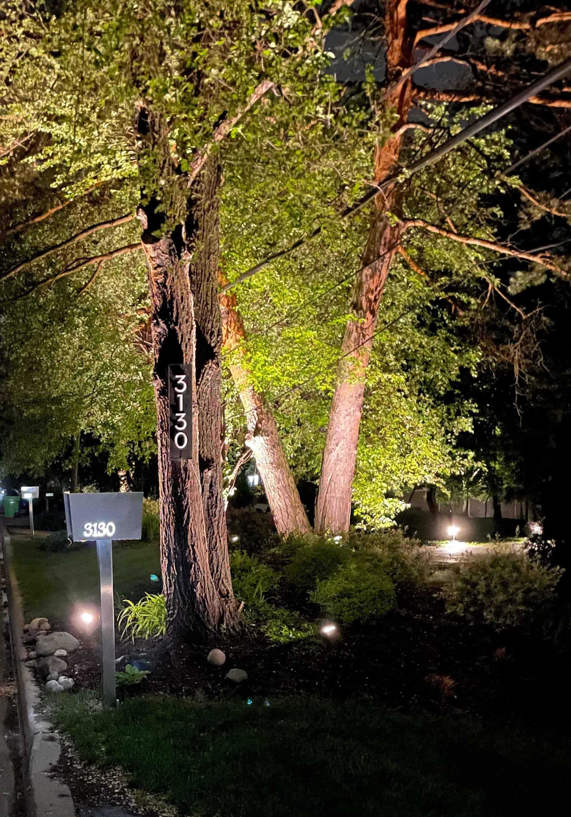 By illuminating the side numbers at night with low voltage LED lighting that needs to be connected by you, to your low voltage landscape lighting.