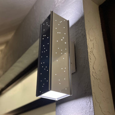 Classic Up and Down wall sconce with 3 design styles perforated into the sides to create a peek-a-boo light effect.