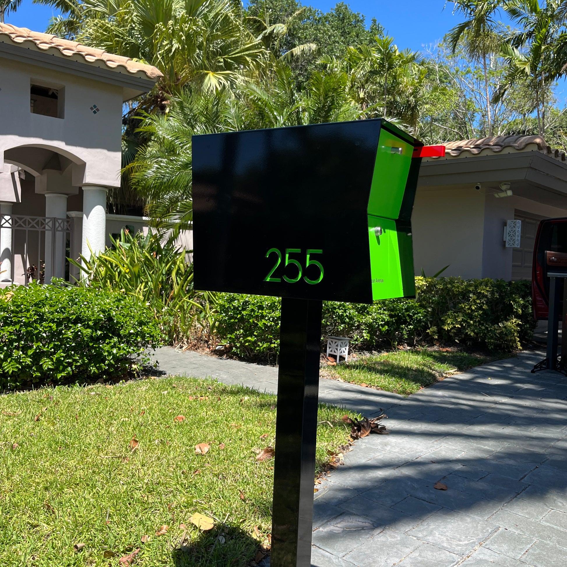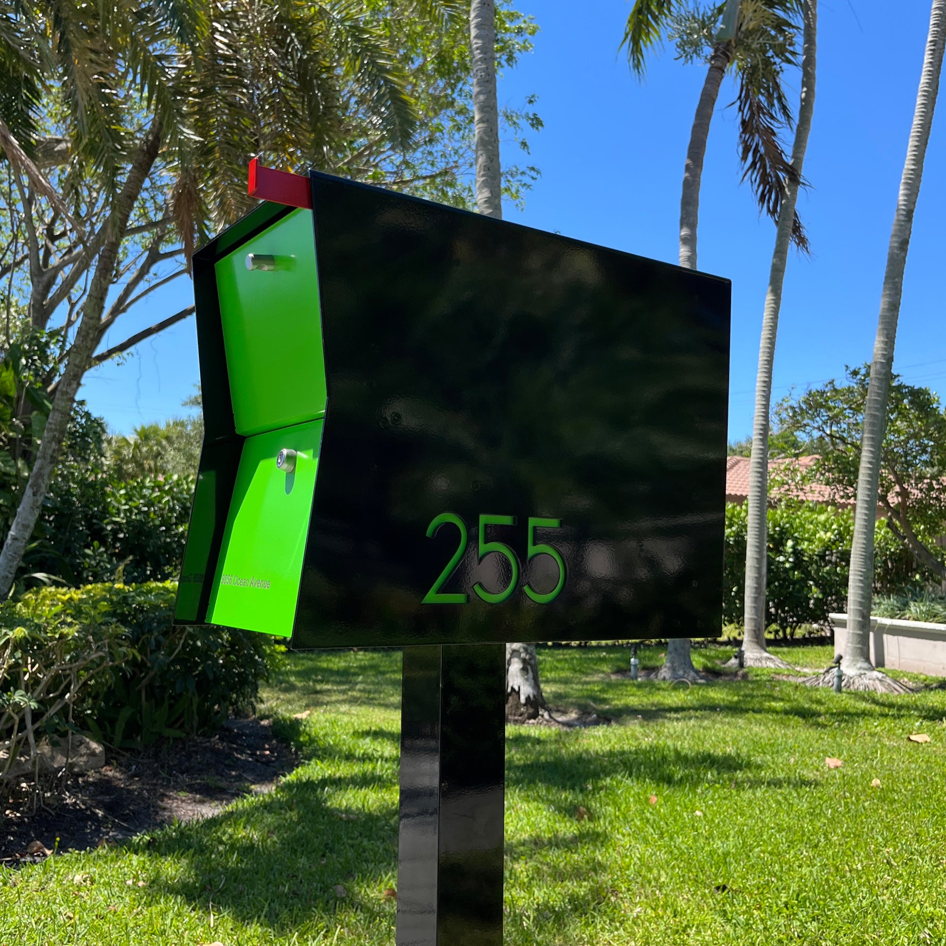 The Retrobox Locking Package Dropbox, post mounted Mailbox is a Mid-century inspired modern mailbox, the perfect curb appeal for your home, office, condo or development. Made of quality materials, here in the USA.