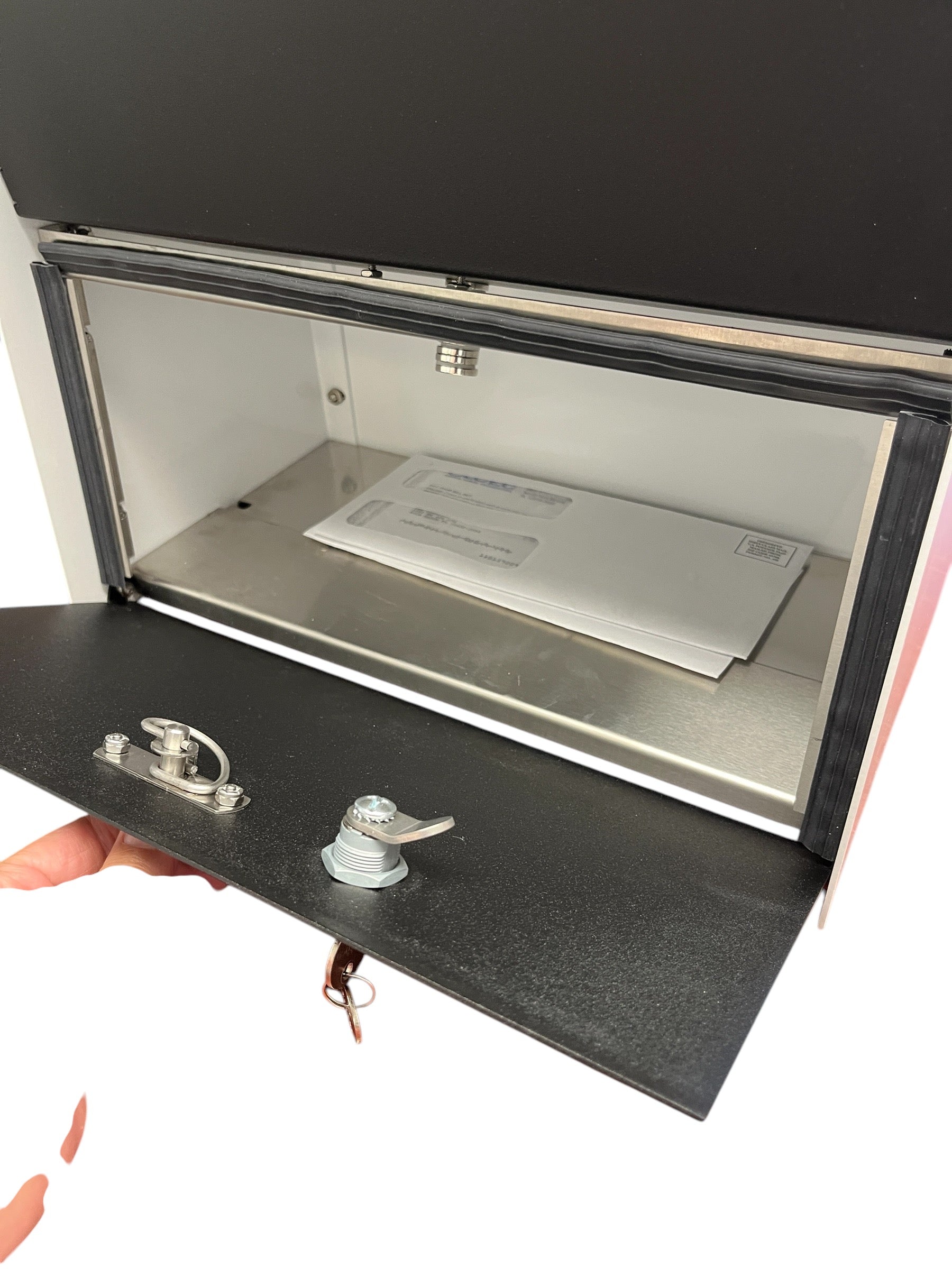 - Concealed outgoing mail clip on front door hopper for added protection from theft & weather.