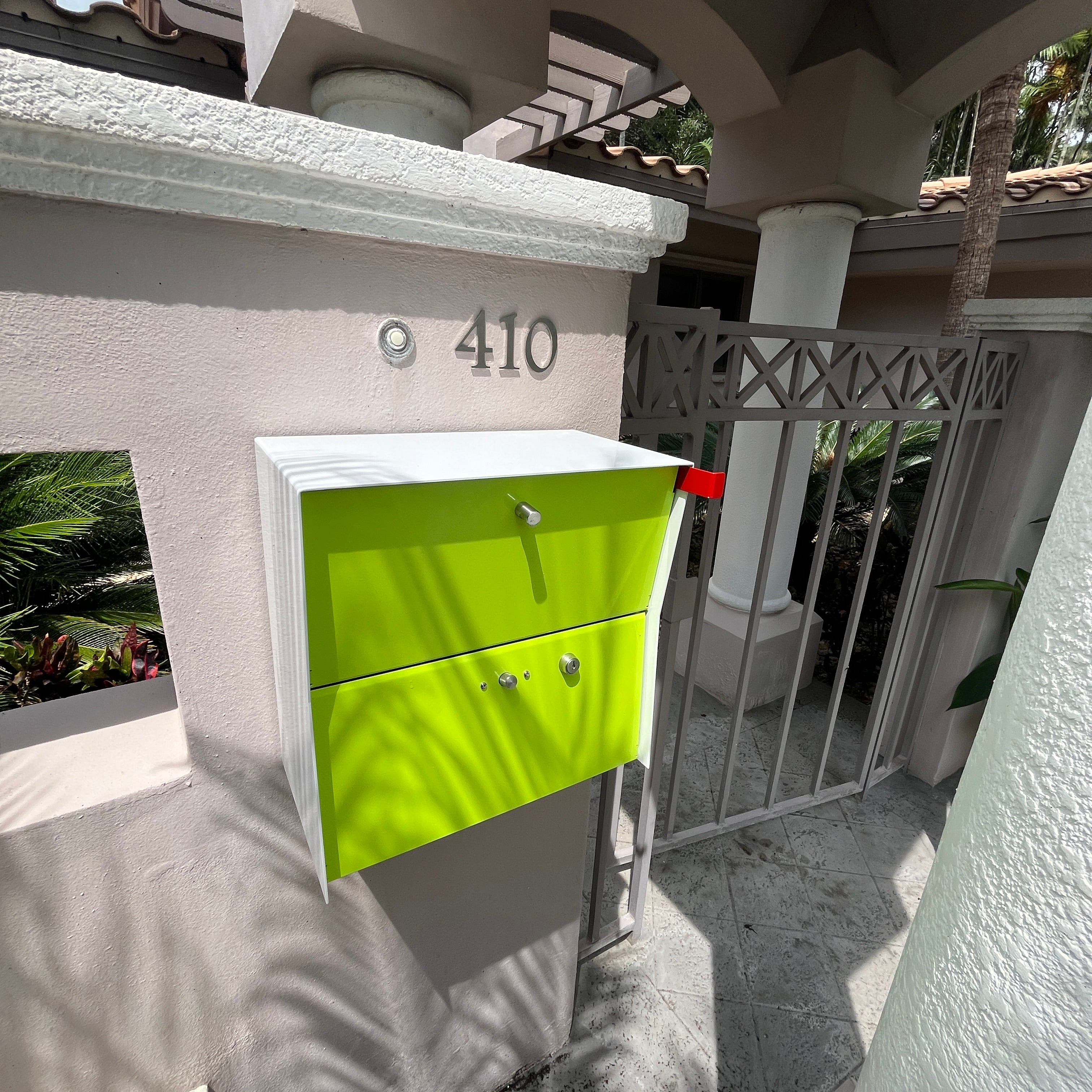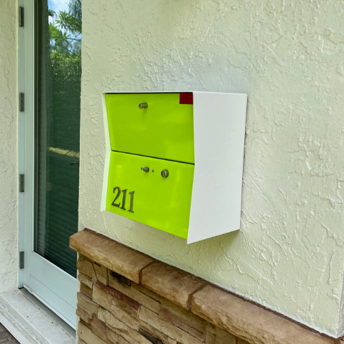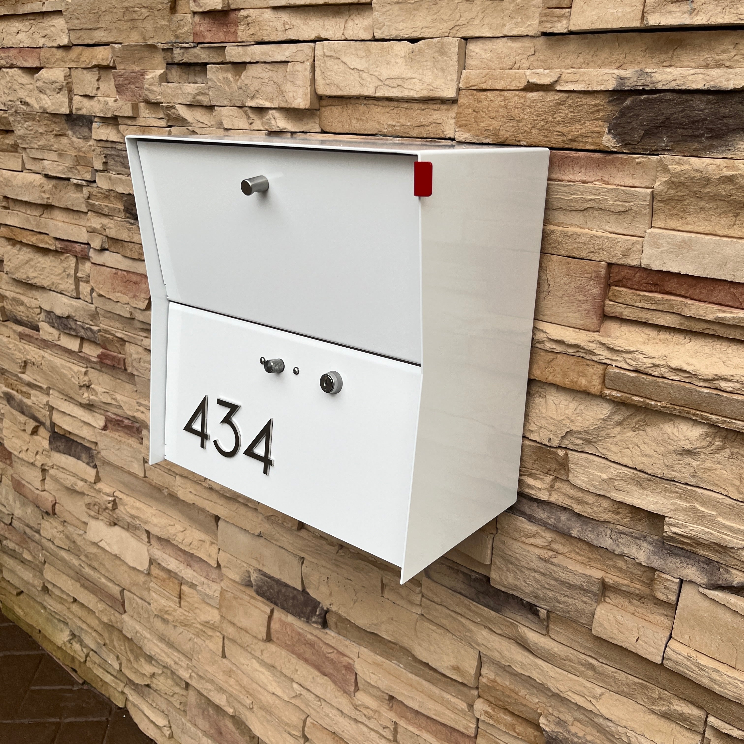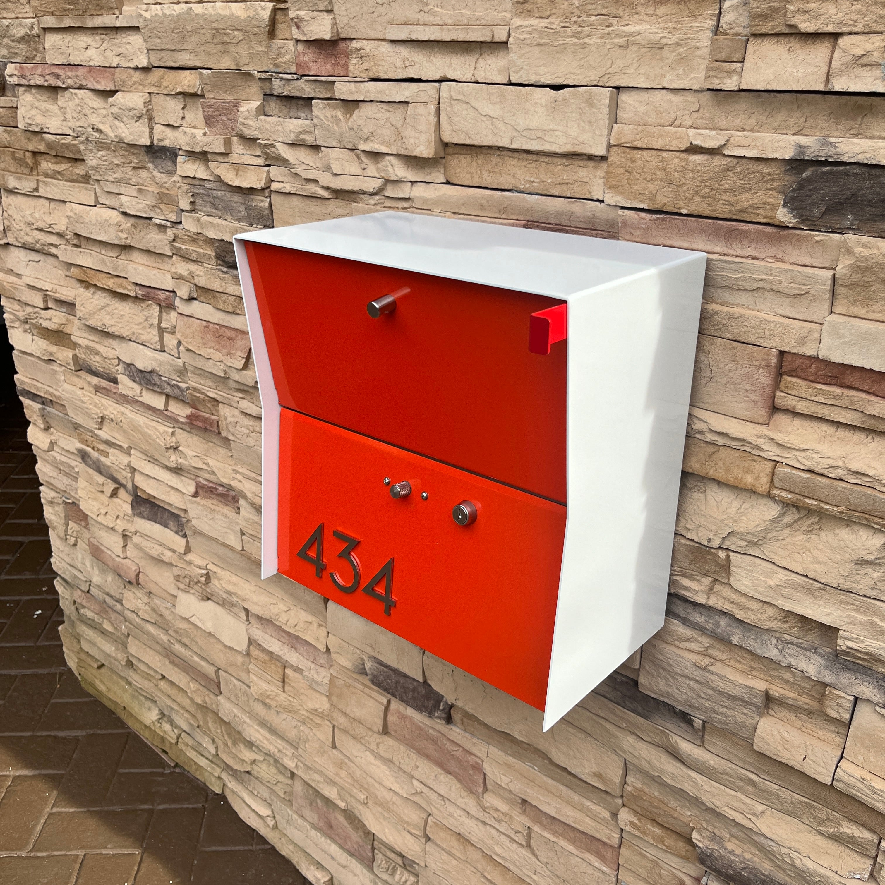 -The RetroBox Locking Small Package Wall Mounted Mailbox is a Mid-century modern inspired locking mailbox, the perfect curb appeal for your home, office, condo or development. Made of quality materials, here in the USA.