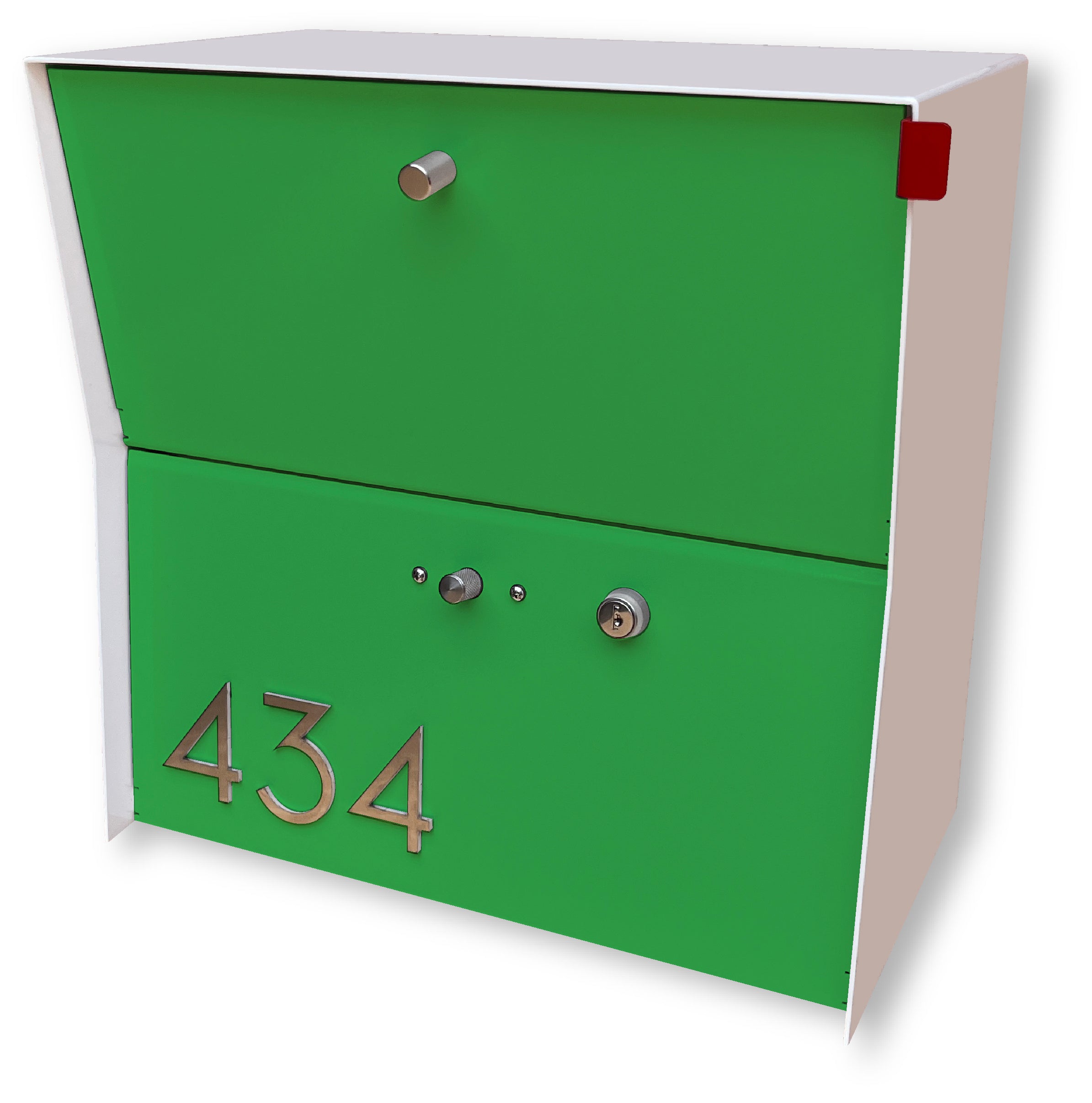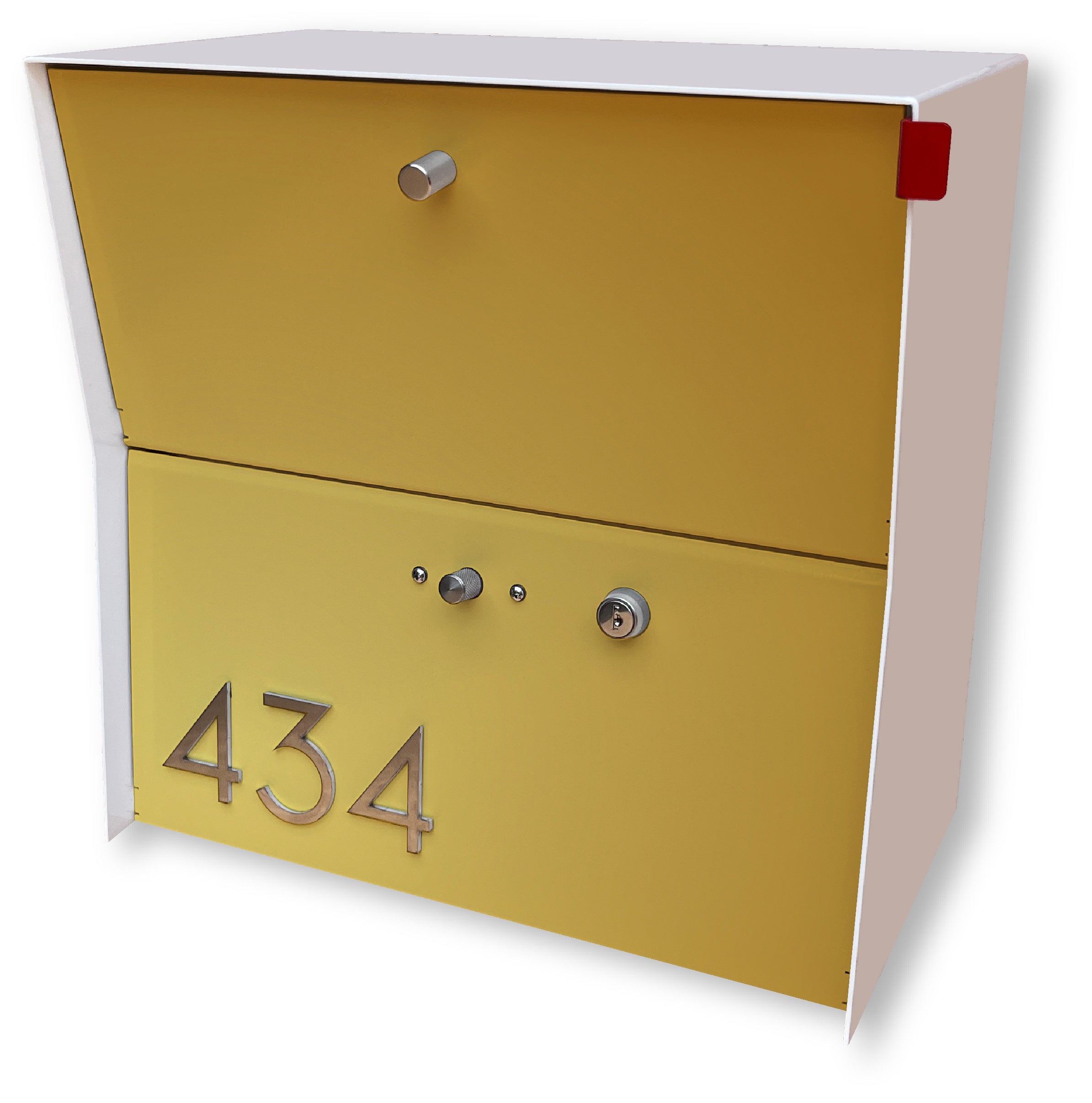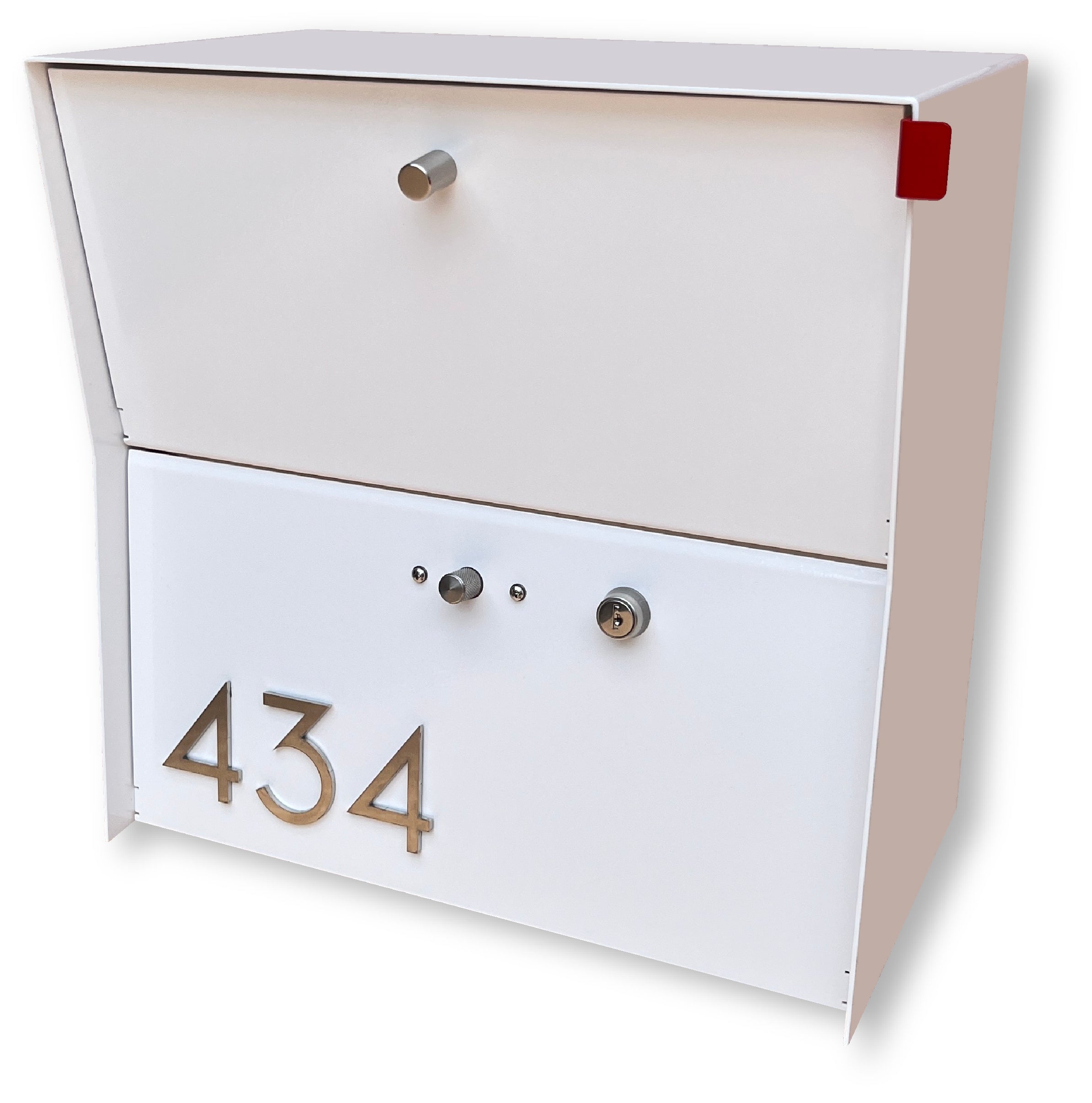 -The RetroBox Locking Small Package Wall Mounted Mailbox is a Mid-century modern inspired locking mailbox, the perfect curb appeal for your home, office, condo or development. Made of quality materials, here in the USA.