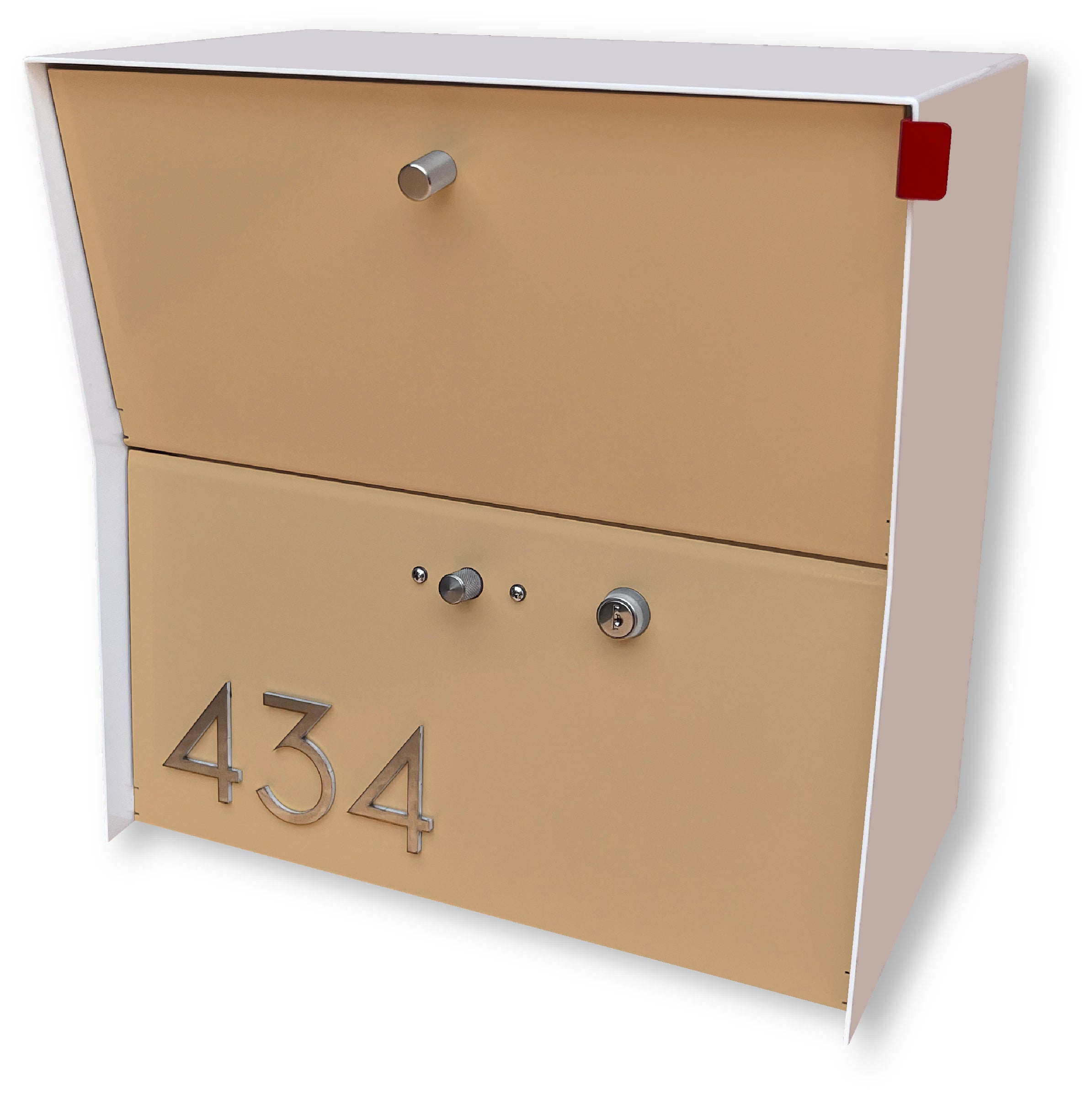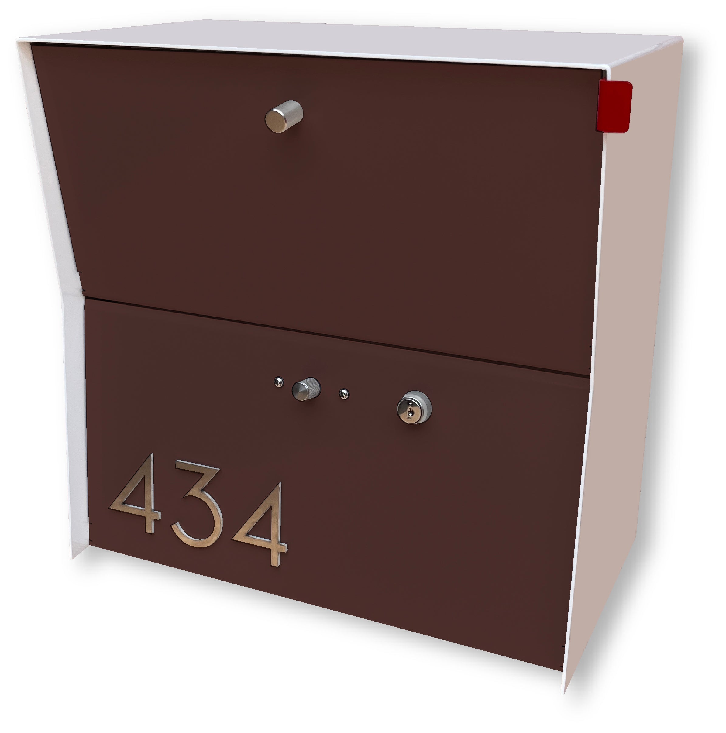 -The RetroBox Small Package Wall Mounted Mailbox in Coco Nut is available in 15 different door finishes, can be ordered with stainless steel numbers in your choice of number styles, (Retro or Uptown), OR LEAVE BLANK IF YOU DO NOT WANT NUMBERS ON THE FRONT DOOR
