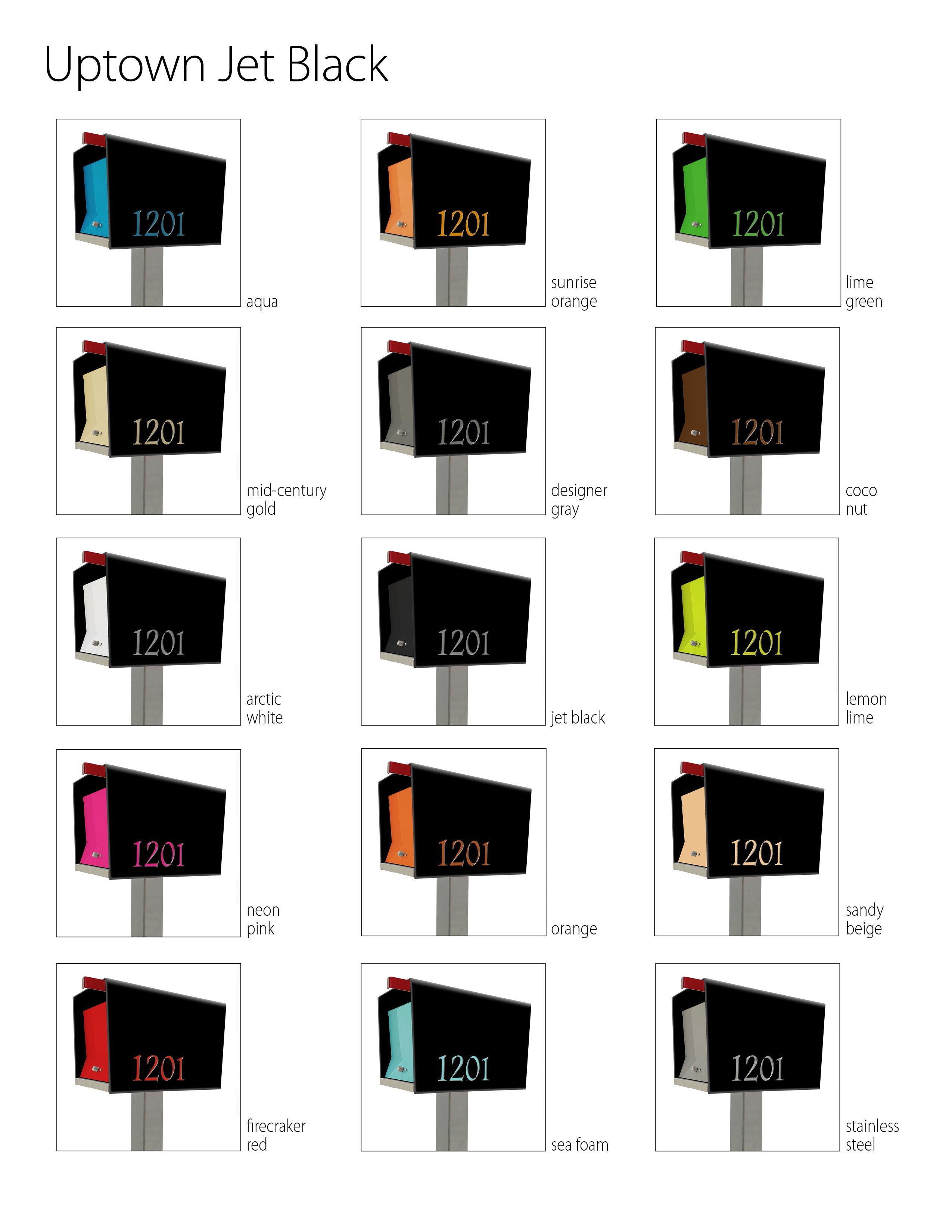 Each UptownBox body is made out 5052-H32 aluminum, powder coated with marine grade paint, with custom anodized doors and number backings. The base is made out of 18 gage #4 finish stainless steel.